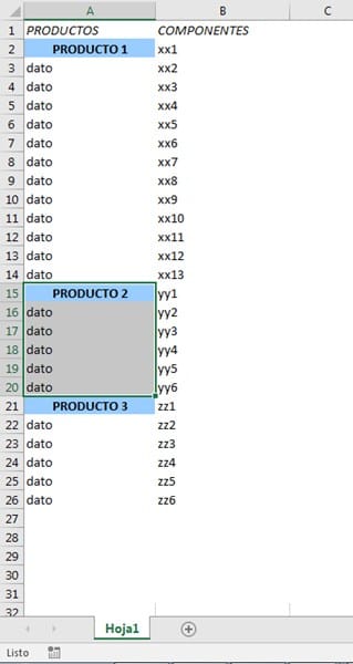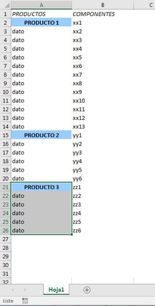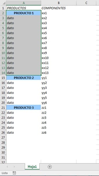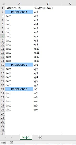 *Todos los datos de la tabla son variables. Puede haber tantos productos como componentes.