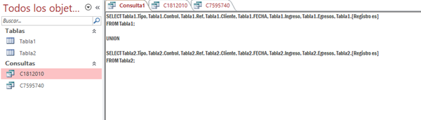 SELECT Tabla1.Tipo, Tabla1.Control, Tabla1.Ref, Tabla1.Cliente, Tabla1.FECHA, Tabla1.Ingreso, Tabla1.Egresos, Tabla1.[Registro es]