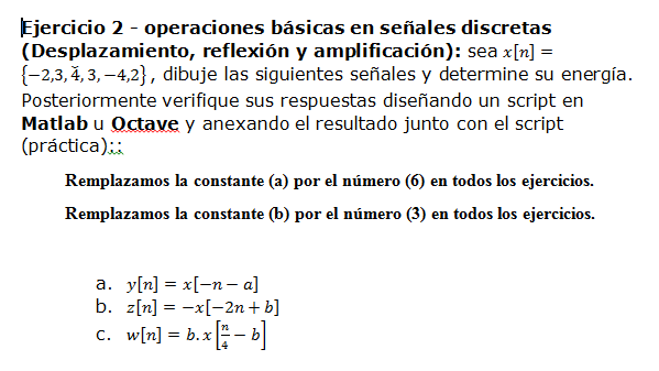 Ejercicio 2 - operaciones básicas en señales discretas (Desplazamiento, reflexión y amplificación): sea x[n]={-2,3,4 ̌,3,-4,2}