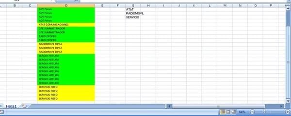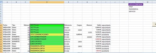 Comparar dos columnas en Excel la G con la D, la columna G tiene reducidos los nombres que son los mismos de la columna D. Ejemplo AT&T de la columna G es el mismo que AT&T de la columna D, solo que esta reducido.