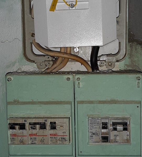 En la caja de la derecha hay un diferencial de (2x25A) para un PIA de 25A (que suministra alumbrado y tomas para un garaje).
