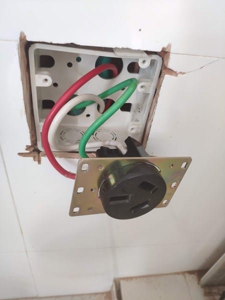 ¿Me gustaría saber cual es la conexión correcta para llevar esos 220v a un único enchufe? Porque un técnico ya nos hizo la instalación y lo que hizo fue conectar los 2 espacios reservados con térmicos individuales de 40A c/u y cada uno lleva su fase que van conectados al enchufe que es de 3 conexiones (2 Fases y Tierra) ¿Es correcto lo que realizó?.