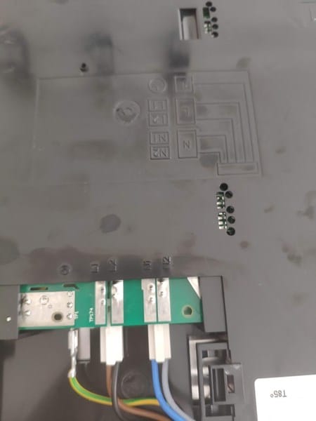 Ya probamos una conexión en la clavija (Negro a una fase, Marrón a otra fase, Amarillo azul y gris a tierra) y al conectar la estufa enciende pero marca un código de error que el manual describe como: "El voltaje de conexión es incorrecto o problema relativo a la red eléctrica"
