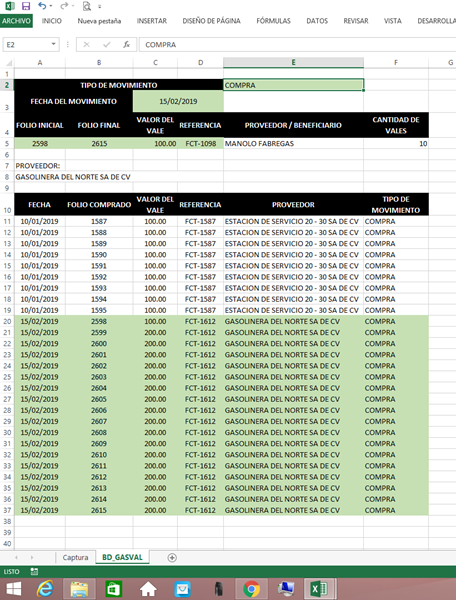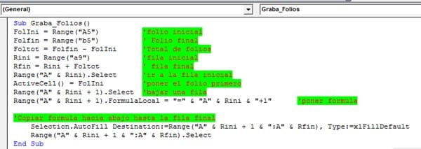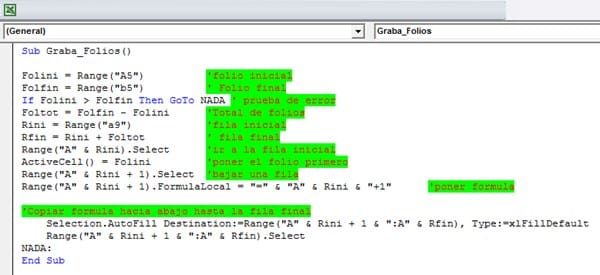 El folio inicial esta en A5 y el folio final esta en B5 la macro deberá insertar a partir de la ultima fila en blanco (B20) la información en la tabla de abajo insertando las filas indicadas en en el folio inicial y final y poner en consecutivo de menor a mayor el numero de vales que se indica, sera posible que me ayuden con esto, se los agradeceré infinitamente... Gracias de antemano.