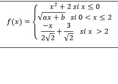 f(2) = f(2+), por lo tanto sqrt(2a+b) = -2 / (2sqrt(2)) + 3 / sqrt(2))