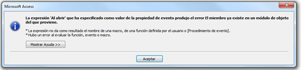 No entiendo lo que quiere decir este texto, me pasa cuando abro el formulario. Si borro lo que esta en VBA en el evento al abrir el formulario, me sale el mismo error en el evento al cargar y luego al cerrar también.