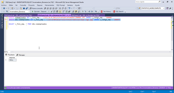 Al realizar una actualización de datos en sql lanza una respuesta nula (Response Null)
