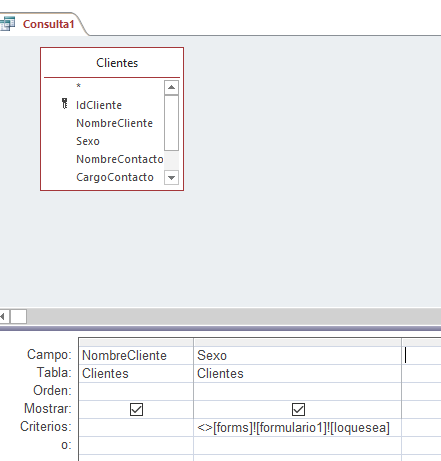 Ya lo tengo echo, aplicando los criterios a la consulta pero la duda es que cuando busco por un criterio que es un campo de una tabla por ejemplo, el campo de la tabla a buscar es: