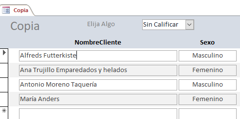 Cuando abro el formulario y elijo sin especificar, el filtro me debería sacar los registros de masculino y femenino. En resumen cuando elijo sin especificar me debe salir en el informe tanto masculino como femenino.
