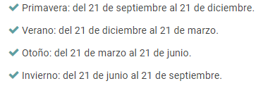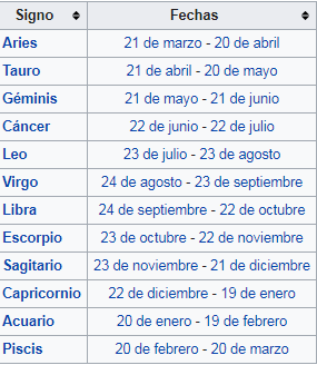Los números que están antes de los signos del zodiaco y de las estaciones corresponden al mes y día de inicio de cada uno.