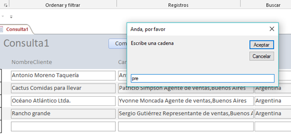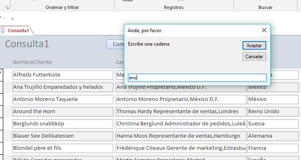 Luego creé una macro que habría el formulario y aplicaba el filtro de la consulta.