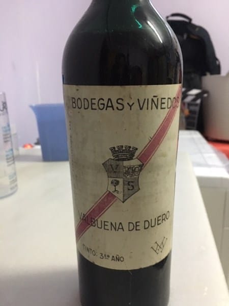 Tengo esta botella de vino tinto Valbuena de Duero 3er año de Bodegas Vega Sicilia. Según foros data de los 60s.