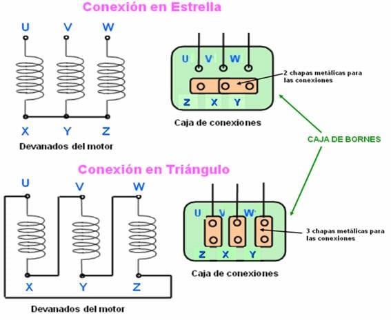 Para el ejemplo, si tienes un motor que en la placa dice "220/380", teniendo una linea de 220 voltios entre fases, se conecta en Delta, si tienes 380 entre fase, se conecta en Estrella.
