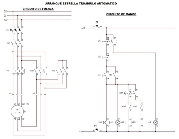 -Se usan tres contactores: Uno alimenta la estrella, otro cortocircuita las puntas de bobina para hacer el centro de estrella, y otro alimenta esa misma punta para hacer el triangulo. Deben estar MUY BIEN ENCLAVADOS, porque ante una falla, se produce un cortocircuito bruto. Ademas, se necesita un temporizador para regular el tiempo en que se pase de una conexion a la otra.