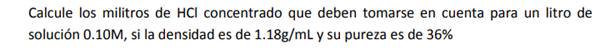 - Volumen de HCl puro en los que están contenidos estos gramos.