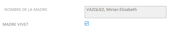 Si la respuesta es NO, el campo "nombre madre" queda inhabilitado.
