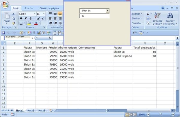 Sub Agregar(combo As ComboBox, dato As String) For i = 0 To combo.ListCount - 1 Select Case StrComp(combo.List(i), dato, vbTextCompare) Case 0: Exit Sub 'ya existe en el combo y ya no lo agrega Case 1: combo.AddItem dato, i: Exit Sub 'Es menor, lo agrega antes del comparado End Select Next combo.AddItem dato 'Es mayor lo agrega al final End Sub Private Sub ComboBox1_Change() Dim i As Double Dim w As Double Dim final As Double Dim final_1 As Double var2 = ComboBox1.Column(0) Cells.Find(What:=ComboBox1.Value, After:=ActiveCell, LookIn:=xlFormulas, lookat:= _ xlWhole, SearchOrder:=xlByRows, SearchDirection:=xlNext, MatchCase:=False _ , SearchFormat:=False).Activate Worksheets("Sheet1").Select final = Application.CountA(Worksheets("Sheet1").Range("f:f")) For i = 2 To final Nombres = Worksheets("sheet1").Cells(i, 6).Value If Nombres = Me.ComboBox1.Value Then Me.TextBox2.Value = Application.CountIf(Worksheets("sheet1").Range("F1:F" & final), Nombres) End If Next 'Me.TextBox3 = Me.TextBox1.Value - Me.TextBox2.Value RESULTADO = 0 For X = 2 To 100 If Cells(X, 6) = Me.ComboBox1.Value Then RESULTADO = RESULTADO + Cells(X, 8) Me.TextBox4.Value = RESULTADO End If Next End Sub Private Sub UserForm_Activate() 'Cargar los ámbitos Set h = Sheets("Sheet1") For i = 3 To h.Range("F" & Rows.Count).End(xlUp).Row Call Agregar(ComboBox1, h.Cells(i, "F")) Next End Sub
