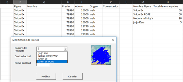 Al seleccionar y dar click al producto Shion Ex debería ir a la columna M y activar la celda, pero se va a la fila F y se posiciona en uno de los Shion Ex y no me permite cambiar la cantidad, ya que pasa lo de la foto 2.
