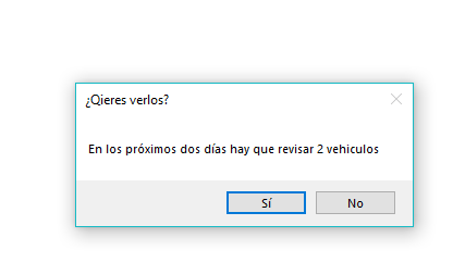 Si hay mantenimientos al iniciar el sistema se mostrarán aquellos vehículos que cumplan la condición como muestra la figura.