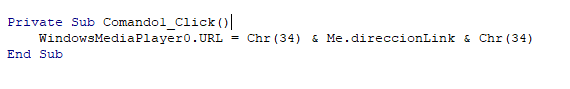 Tengo WindowsMediaPlayer0.URL = "D:\Sonidos\Productos\SonidoAgua.wav" y me funciona perfectamente. Sin embargo si dentro de una tabla tengo un campo llamado direccionLink cuyo contenido es "D:\Sonidos\Productos\SonidoAgua.wav" y yo defino WindowsMediaPlayer0.URL = direccionLink, me da error. Que debo hacer para eliminar este problema?