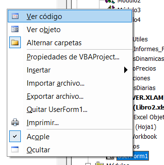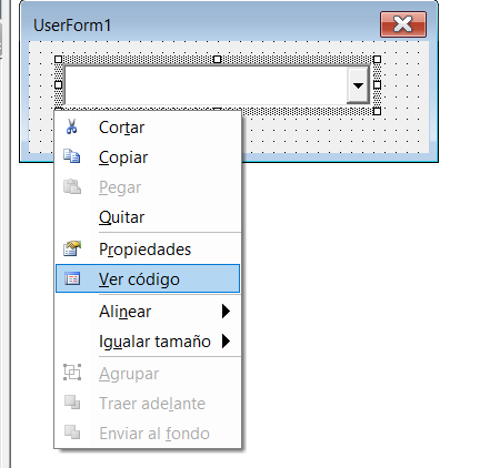Para esto vas de nuevo al userform, click derecho y esta vez eliges "ver objeto"