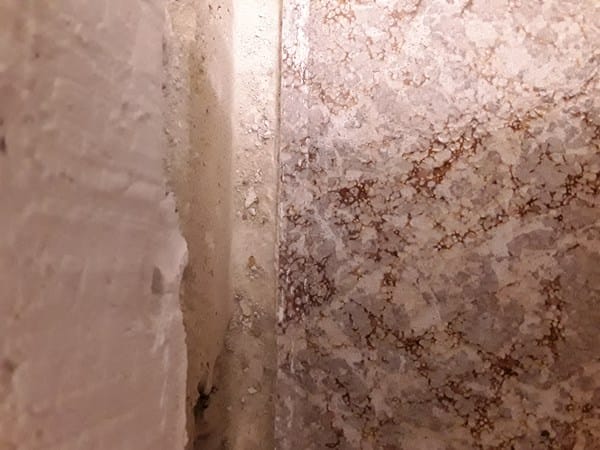 Al quitar el zócalo de gres y el de terrazo me quedarán unos centímetros sin baldosa y por eso tengo que añadir y cortar las baldosas de gres. Antes había un espejo con marco y no se veía el zócalo.