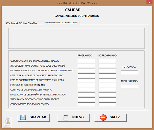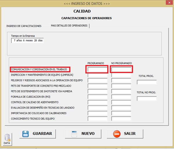 Tenia un proyecto anterior lo que estaba realizando de capacitaciones a operadores gracias a este foro de expertos, la idea es hacer este proyecto enfocado a las horas capacitados y después adaptar al proyecto de los cursos dictados, me parece seria mas fácil, porque me peleo mucho con los códigos ahora mismo también.