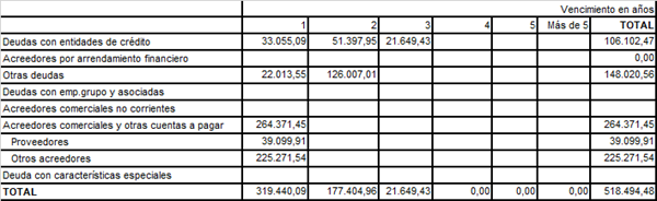 Estoy haciendo la memoria del 2016 y debido al cambio que hubo en el punto numero 6 (Pasivos financieros) hay un cuadro con la clasificación de vencimientos de los pasivos financieros. No sé muy bien como hacerlo.