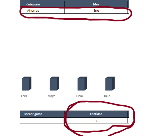 Si seleccionas "Enero" con la categoría "Ahorro", según tu ejemplo ¿la suma debiera ser igual a 5 y la cuenta igual a 2?
