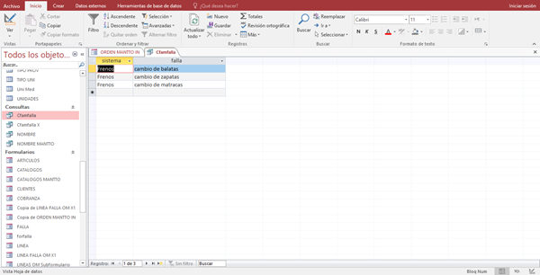 En la tercera muestro la consulta que de acuerdo al sistema seleccionado que es frenos tiene las reparaciones que le corresponden a frenos pero en el cuadro combinado me sigue mostrando las de motor