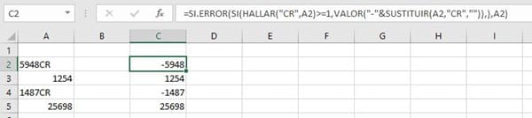 Me están dando una base de datos donde los números negativos aparecen con la terminación CR, por ejemplo, 5948CR en lugar de -5948, quisiera saber si hay una forma de cambiar todas las celdas que aparecen de esa forma a un número negativo.