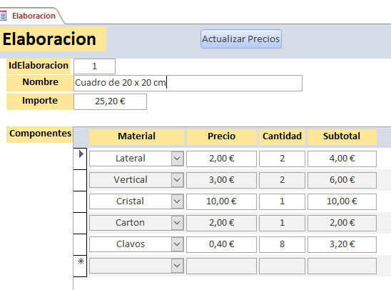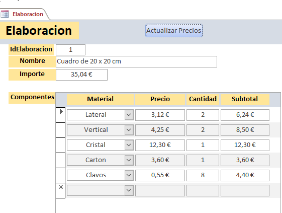 Tengo una tabla de datos "Materiales" en la que ingreso el nombre y el precio por unidad de los materiales que utilizo. Desarrollé un formulario "Elaboración". Elijo en el formulario "Elaboración" todos aquellos materiales que utilizo para elaborar productos finales (Más de dos). Este formulario hace unos cálculos para dar un resultado del "costo final". Sin embargo, cuando cambio los precios de los materiales en la tabla "Materiales" no se cambia el "costo final", sino que mantiene como resultado el "costo final" que tenía antes del cambio de precio. Para solucionarlo, he tenido que eliminar el material en el formulario y volver a ingresarlo. Y ahí hace el cálculo correcto. Ha probado con "recalcular" y "refrescar" y no recalcula y no entrega el nuevo valor final, sino que mantiene aquel valor que tenía antes del cambio de "precio". ¿Tengo qué ingresar alguna instrucción para que recalcule? ¿No hay una función incorporada o algo similar que permita la actualización automática cada vez que se ingrese un valor nuevo?