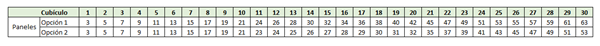 Necesito saber cuantos paneles de madera requiero para colocar 30 cubículos en 3 líneas de 10 cada una