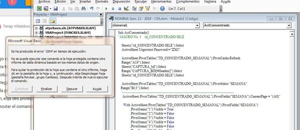 Como están, espero que muy bien, hoy en día solicito de su apoyo tengo este código en macro; pero donde tiene asteriscos me marca error y no me puede actualizar, realiza todo lo demás más no me actualiza, están protegidas las hojas; me manda un mensaje "se ha producido el error 1004 en tiempo de ejecución. No se puede ejecutar ese comando si la hoja protegida contiene otro informe de tabla dinámica basado en los mismos datos de origen. Para quitar la protección de la hoja que contiene el informe, haga clic en la pestaña de la hoja y, a continuación, elija des proteger hoja(pestaña revisar, grupo de cambios). Después intente de nuevo ejecutar el comando”.