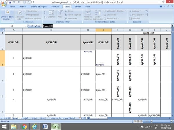 Error en datos, me cambio todos los datos como #¡VALOR!
