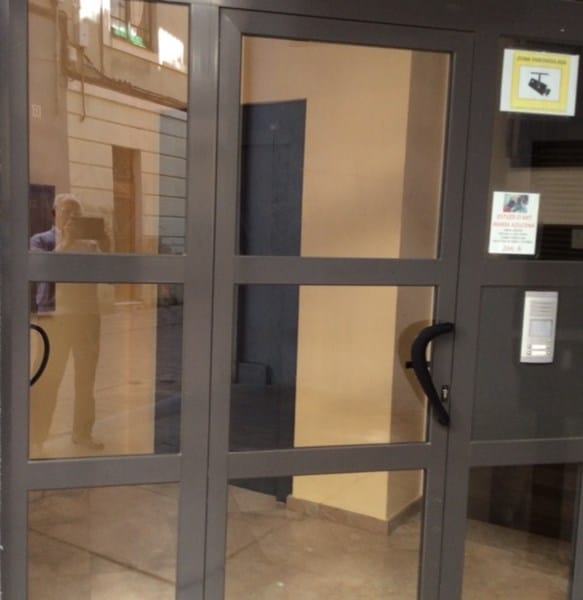 Si decides sustituir un cristal, creo que el de la izquierda de arriba es muy grande y queda muy a la vista. Te va a quedar poco estético, pero tienes otra posibilidad. En el cristal que tienes encima del portero automático si que puedes hacer eso sin perder mucha estética, ya que con la pegatina de la cámara y demás no tiene mucha vista.