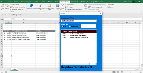 Expertos como puedo buscar mediante dos criterios dentro den un filtro de comboxbox que me carga los datos en un lisbox, cada vez que seleccione en el combobox una determina escuela solo me filtra los datos que le pertenecen a esa escuela ahora lo que no me sale es como buscar dentro de ese mismo filtro lo intente pero me cargan todos los registros de mi hoja en la búsqueda.