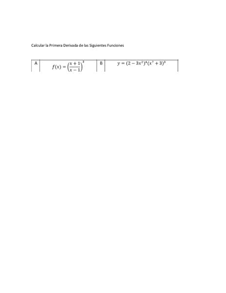 MatemáticasCálculo Jaime Hortua el 13 abr. 19 Calcular la Primera Derivada de las Siguientes Funciones Agradezco de su colaboración con la solución de los dos siguientes ejercicios . Gracias . Seguir Siguiendo Dejar de seguir