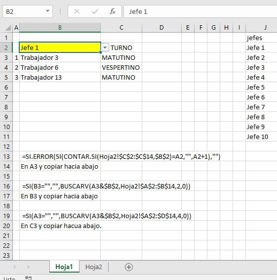 Macro para seleccionar el nombre de un Jefe de una lista y que busque en una base de datos todos los trabajadores de ese jefe