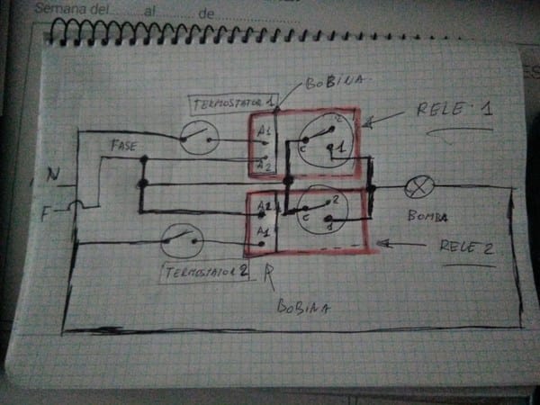 Necesito Esquema de conexión de una caldera con una bomba, dos electroválvulas y dos termostatos
