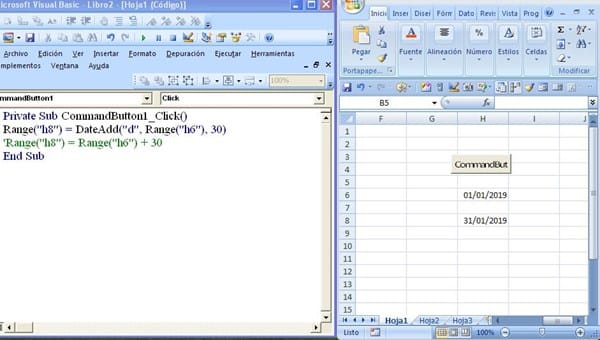 En un botón tengo varios códigos, ahora quiero agregarle un código que me calcule la fecha de vencimiento... Yo ingreso una fecha de elaboración 01/01/2019 en la celda (H6) y quiero que en la celda (H8) me muestre la fecha de vencimiento 31/01/2019 siendo 30 días para que sea fu vencimiento