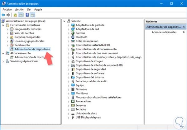 Luego seleccionas Administrador Dispositivos.