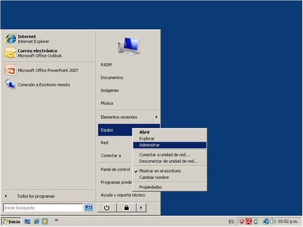 Para hacer esto, ingresa al Administrador Dispositivos, dando clic derecho sobre MiPC, y luego en ADMINISTRAR.