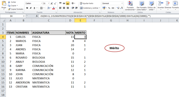 =SI(D4>=1; 1+SUMAPRODUCTO(($C$4:$C$24=C4)*(($D$4:$D$24+FILA($D$4:$D$24)/10000)>D4+FILA(D4)/10000));"")