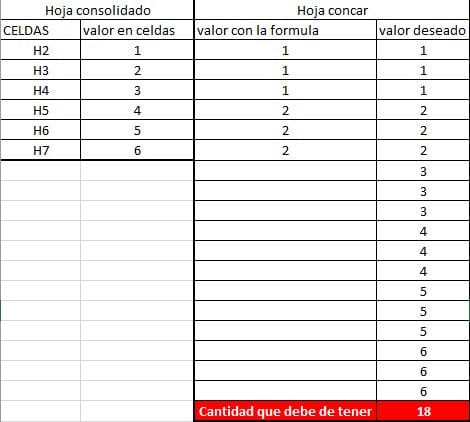 Pero ahora necesito realizar la misma fórmula pero usando como referencia otra hoja con valores, coloco la siguiente fórmula pero no resulta dando error donde se resalta con negro, tengo 2 hojas una de ellas se llama consolidado en donde se tiene los valores no siempre son el mismo rango por eso utilizo currentregion; seguido tengo otra hoja concar en donde utilizo esta macro para que inserte las fórmulas basando en los datos de la hoja consolidado pero da error marcándome en negro.