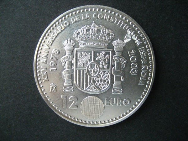 Me gustaría saber cuál sería su valor en la actualidad. Se trata de una moneda conmemorativa de 12 euros 2003 del XXV Aniversario de la Constitución Española. Muestra en su anverso las efigies superpuestas de SS. MM. Los Reyes de España y en su reverso, el Escudo Constitucional.
