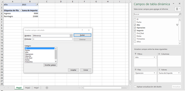Lo que no consigo materializar es la resta Ingreso-Reintegro. No me vale insertar campo calculado por cuanto lo que pretendo restar son componentes del campo. ¿Cómo podría hacerlo?