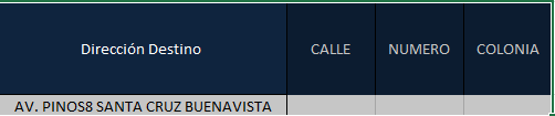 Me podrían ayudar a saber si se puede que en una lista que desplegable que tengo en una lista agrego imagen, escojan ejemplo av pinos... Y que en las tres celdas siguientes se llenen con lo mismo pero la dirección esta dividida por espacios, calle, numero y colonia