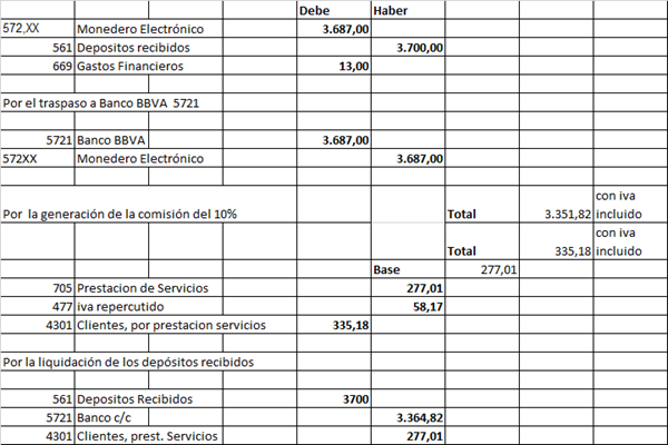 2.- Una vez se ha hecho el traspaso de saldos entre esta entidad y el banco al uso se monta la contabilidad de la empresa (no es que la entidad de dinero electrónico no deba estar reflejada pero creo que dicho así puede quedar más claro) desde la que se hacen constar ingresos, gastos y se declaran impuestos.