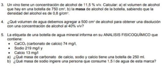 La única "trampita" es que el volumen que acabamos de calcular es el de la solución total, si queremos saber cuanto es de agua simplemente restamos el alcohol, teniendo el valor de 750 cm^3 de agua